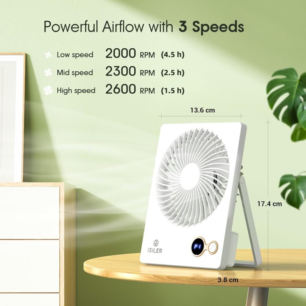 Be the first to review “ISILER Small Desk Fan, 1200mAh Portable USB Fan with 3 Speeds Airflow, Small Personal Fan with 180° Adjustable Tilt Angle, Cooling Fan for Home, Office, Dorm”